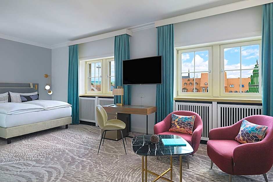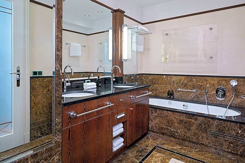 The suite has a private bathroom, air conditioning, soundproof walls, as well as a seating area with a flat-screen TV. The suite features tiled floors, a sofa, a wardrobe and a safe deposit box.